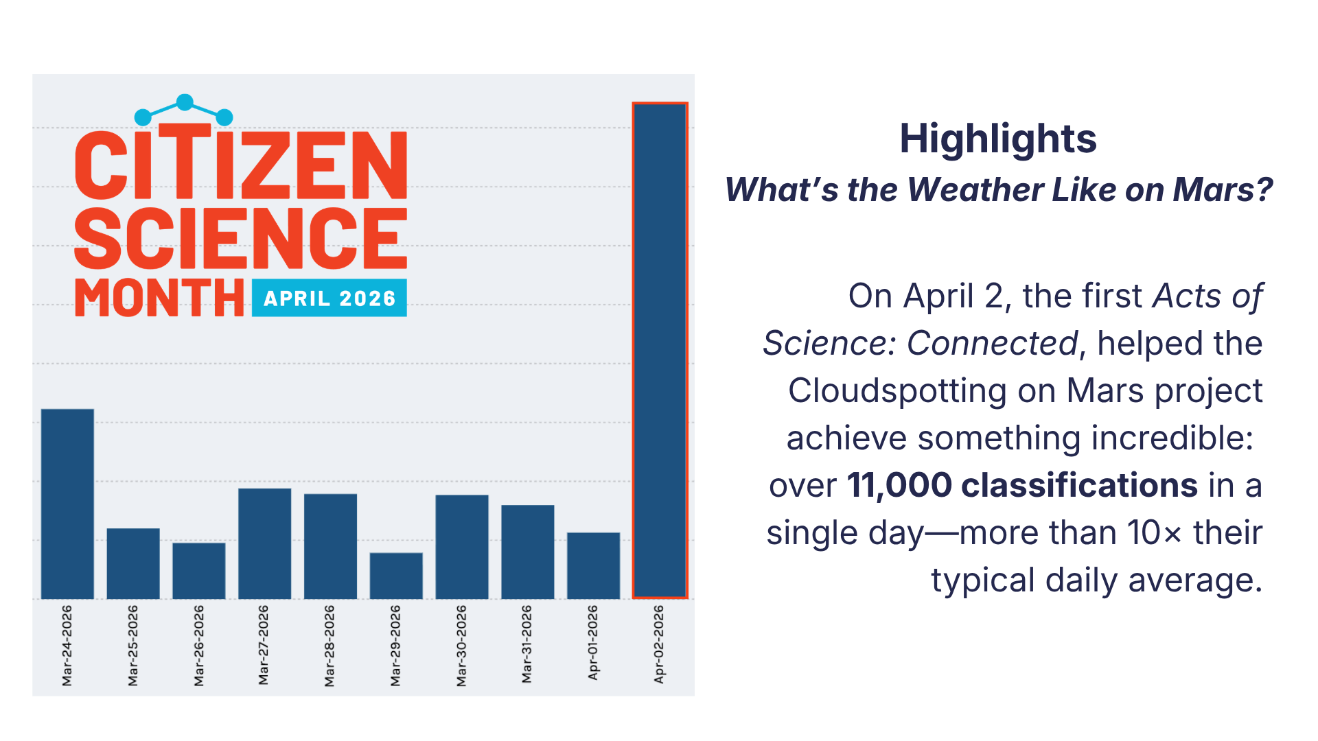 Citizen Science Month, America 250, Mars, Clouds, Space, Zooniverse, NASA Citizen Science