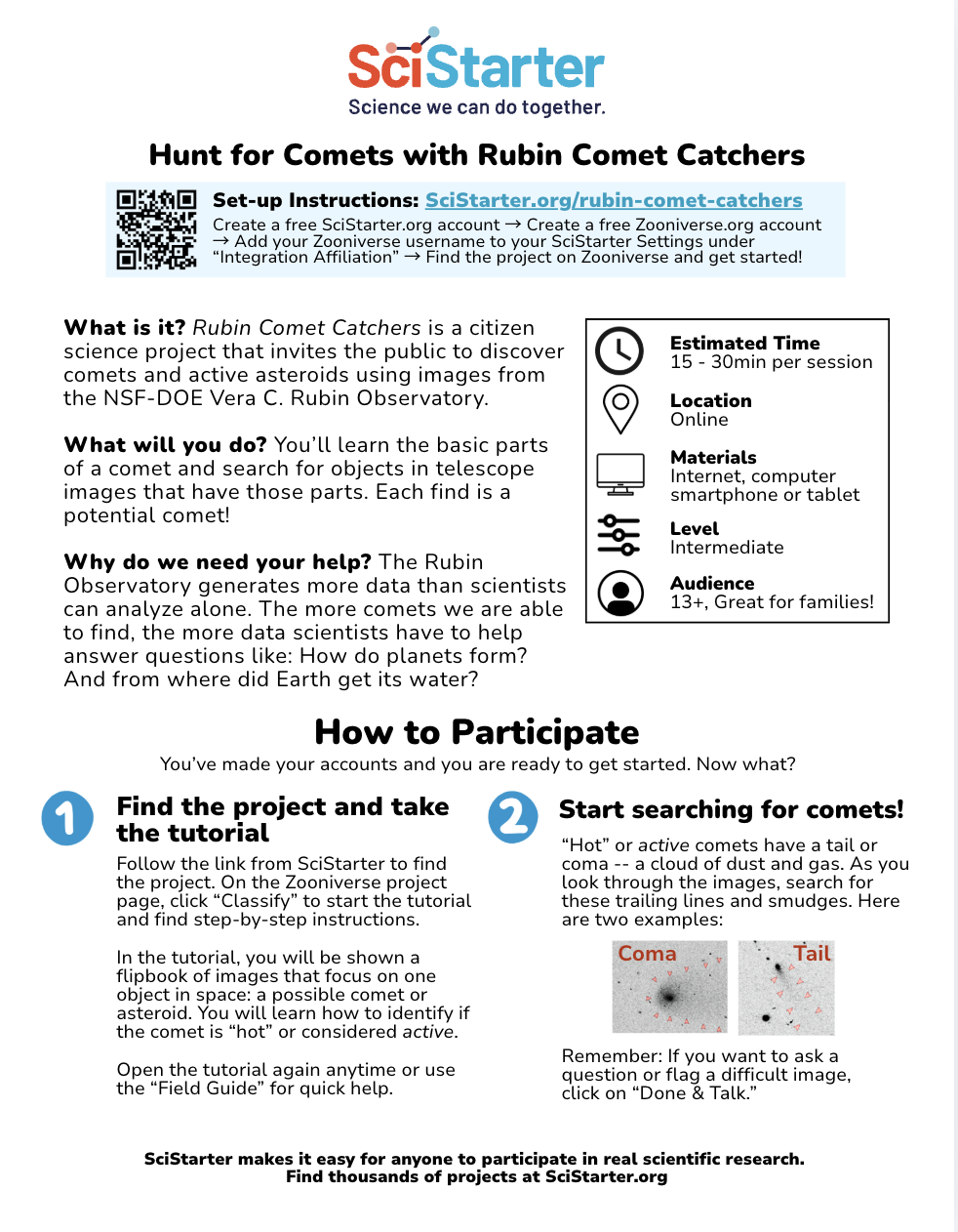 This is a signature event of Citizen Science Month 2026, and all activity counts towards a collective goal of 2.50 Million Acts of Science before the end of April. Report your Acts of Science, which includes event attendance and estimated Rubin Comet Catchers classifications, to CitizenScienceMonth.org!