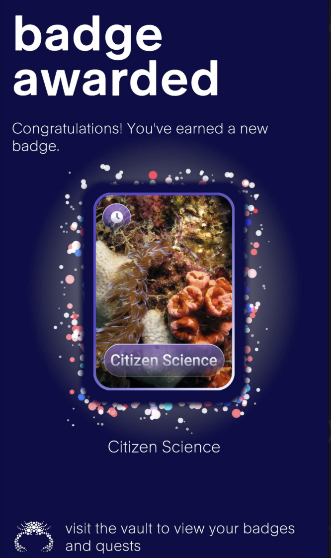 Make a volunteer goal or award to incentivize activity. For instance, our friends at FathomVerse created a limited-edition “Citizen Science Month” badge that volunteers earned by completing 10 expeditions where they searched for and labeled 3 types of corals (Image to the left).