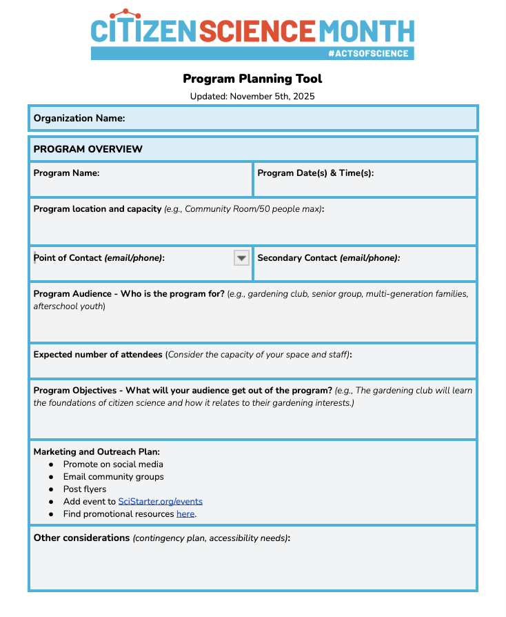 Follow up with the Libraries as Community Hubs for Citizen Science tutorial, updated in July 2025, to get more specifics on current support, relevant program examples, and more.